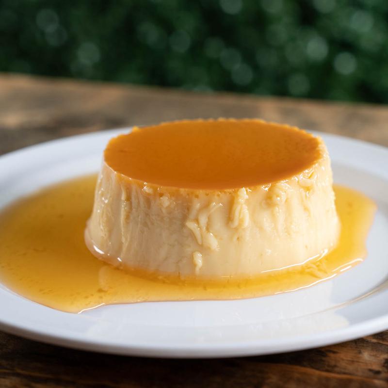 Our signature Flan, contains egg and milk. Flavors change weekly, ask for this week's flavors